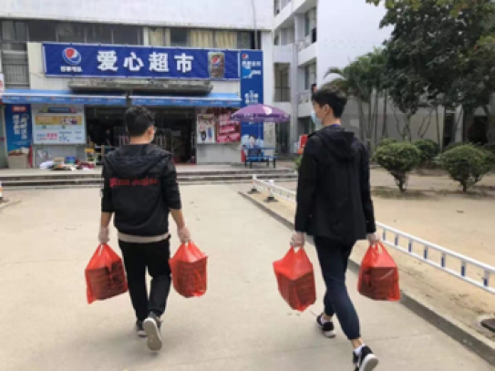 临时党支部为进一步做好新冠肺炎防控工作,切实保障寒假留校学生身体健康和生活完善,组成了党员防疫先锋队。先锋队为隔离学生送餐食、送生活用品,保障其生活基本条件,让留校学子感受到家般的温暖。