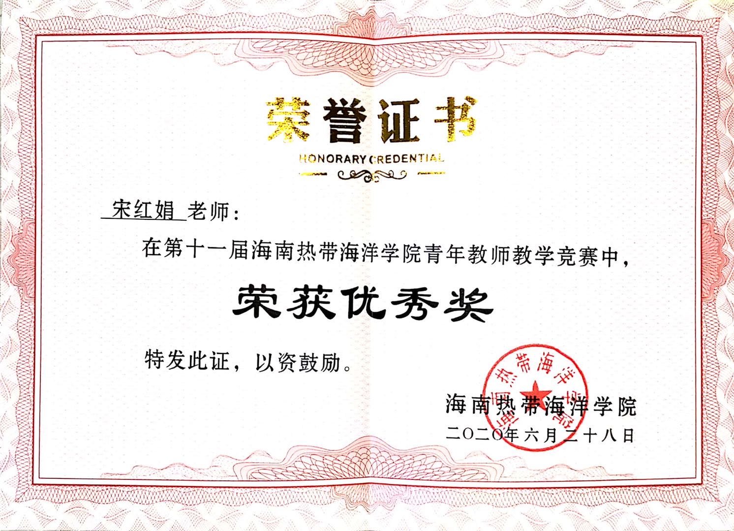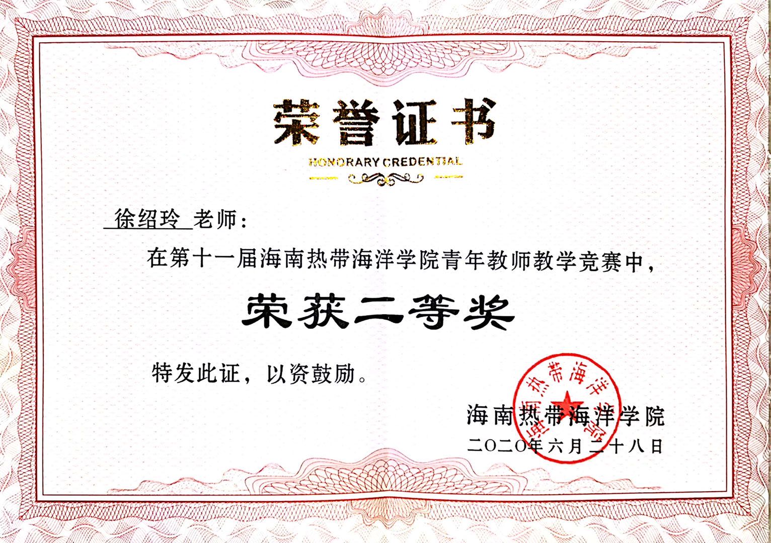 2020年7月2日下午,海南热带海洋学院第十一届青年教师教学竞赛(以下简称“青教赛”)总结表彰会在3208教室举行,海南热带海洋学院副校长杨兹举等领导出席颁奖。我院徐绍玲老师、宋红娟老师分别荣获二等奖和优秀奖。
