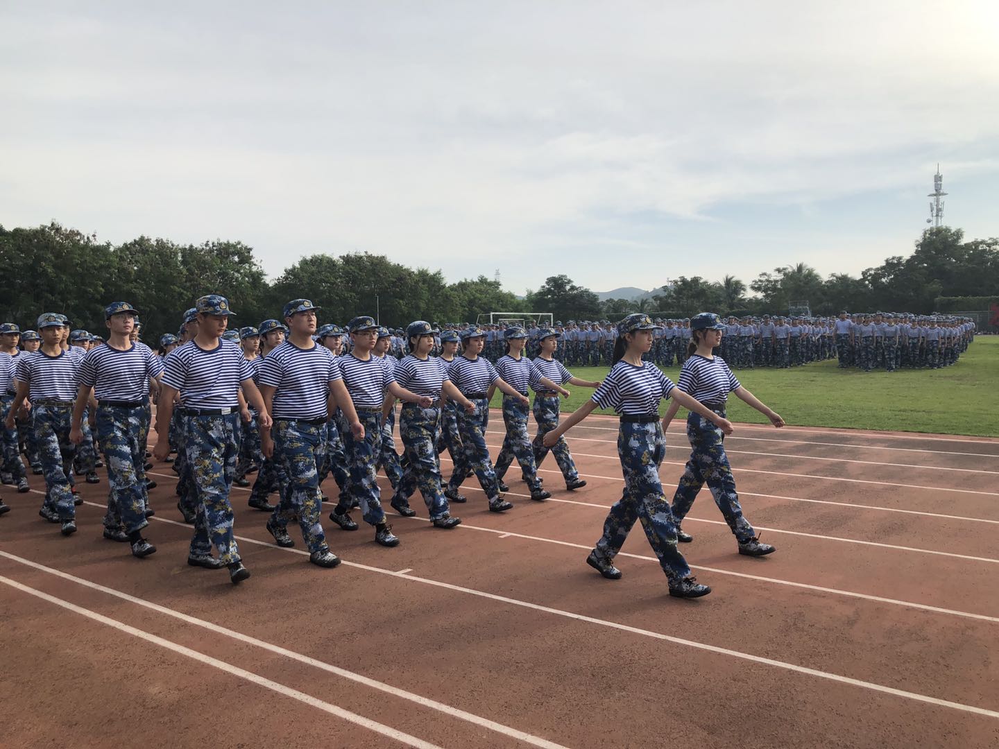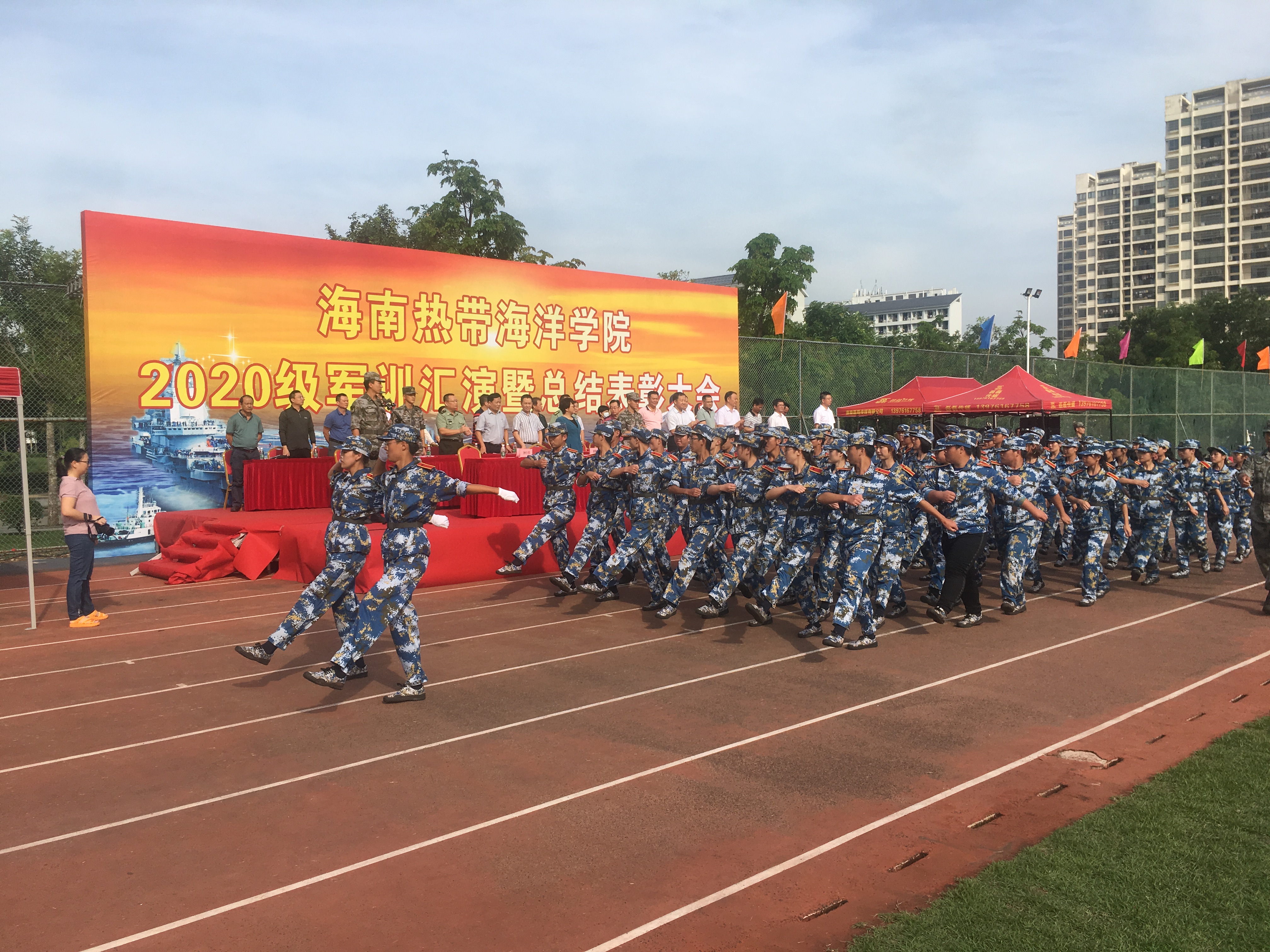 10月27日上午,我校在三亚校区运动场隆重举行2020级军训汇演暨总结表彰大会。南部战区31646部队海防营教导员张革稳少校、副教导员钟行佳少校,我校党委书记王长仁,副校长廖民生、刘湘洪,党委委员穆军参加大会,副校长杨兹举主持。