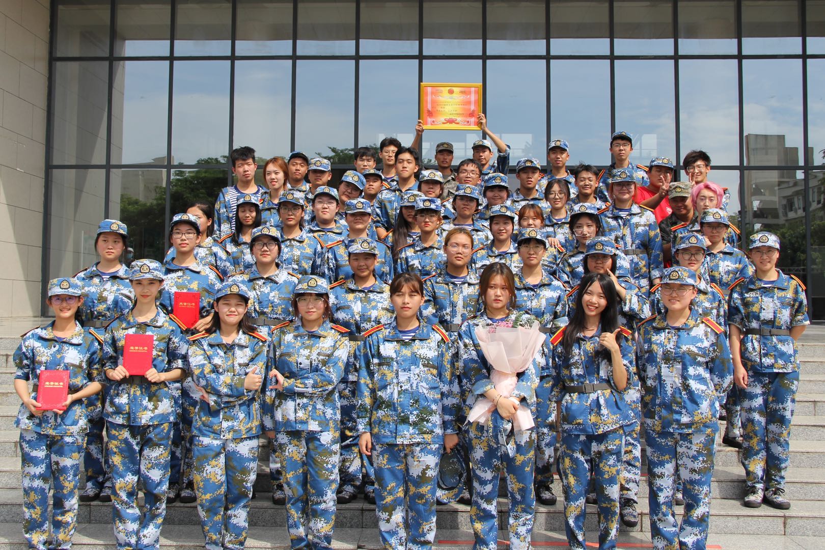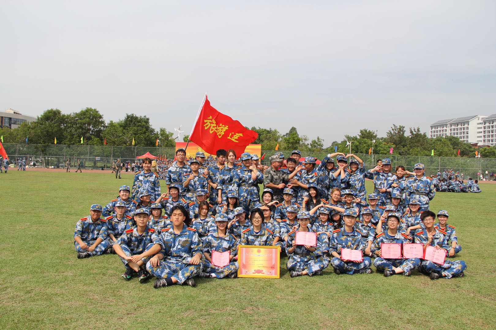 15天的军训生活结束了,同学们经过教官的严格要求,刻苦训练、不怕困难、不怕挫折,圆满完成这次军训任务。
