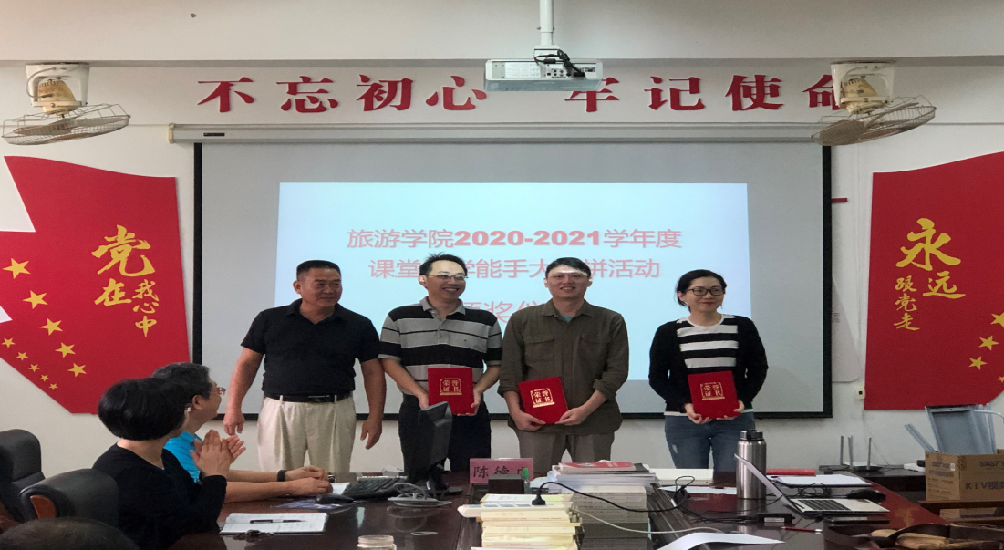 第一阶段,旅游、酒店、会展、中奥四个系部各自开展本系部的课堂教学能手大比拼活动,组织承担本专业教学任务的教师参加比赛,每个系部推荐2名老师参加学院决赛。第二阶段是澳门新莆京游戏大厅版本的决赛阶段,由黄学彬院长担任组长,学院党政领导和学院教学督导组成员共同担任评委,对参赛老师的课堂教学讲授和教学资料及教学效果进行综合评比,评选出澳门新莆京游戏大厅版本课堂教学能手。