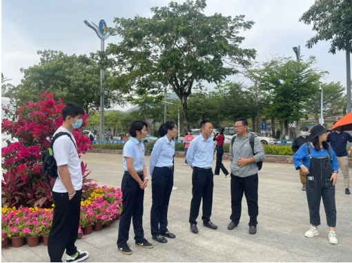 三月的海南,微风轻拂,天气晴好。3月5日下午3点,旅游管理学院院长黄学彬教授带队,率领2022级旅游管理专业全体研究生52人赴三亚市天涯海角景区开展旅游社会工作课程实践活动。景区吴主任带领工作人员与学院师生在景区大门前亲切相见。简短的相互介绍之后,同学们便在景区工作人员的带领下开展实践教学活动。