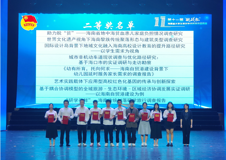 5月26日-28日,第十一届“挑战杯”海南省大学生课外学术科技作品竞赛省级决赛在海南大学思源学堂举行,我院共有两个作品入围省赛,经过激烈的角逐,我院参赛作品在竞赛中喜获佳绩,获特等奖1项、二等奖1项。其中,由谢镕键副教授指导的我院研究生李芳林的参赛作品《文旅赋能海南乡村振兴调查报告》荣获特等奖,这是我校首获特等奖。黄学彬院长和盛颐副教授指导的我院本科生叶秉城团队的参赛作品《基于耦合协调模型的全域旅游—生态环境—局域经济协调发展实证调研——以海南自贸港建设为例》荣获二等奖。