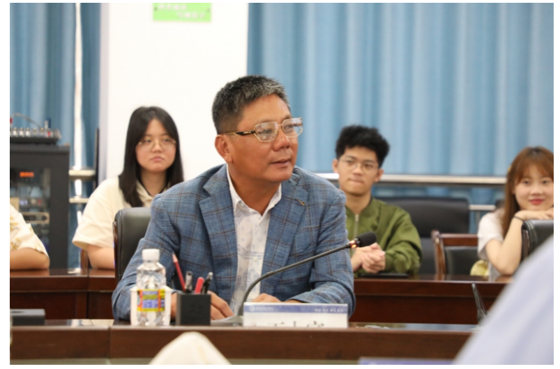 王大富结合个人创业经历向与会师生介绍了鸿洲游艇产业集团有限公司的发展史及良好的业内口碑。他表示,与海南热带海洋学院携手共建鸿洲国际游艇现代产业学院,开启了双方推进产教融合、深化校企合作的新起点。他围绕当前游艇行业发展趋势,介绍了游艇行业的发展前景、就业缺口和收入情况,鼓励在座同学努力学习本领,将来在游艇行业展翅翱翔。