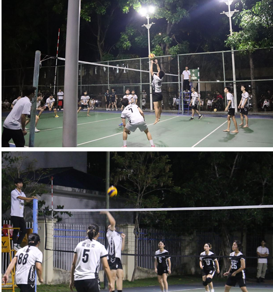 起跳、腾空、扣球、落地手臂在空中划过一道优美的弧线耳边呼啸着呐喊声、喝声他们在球场上不断的超越自我。救球时他们如猎豹般敏捷,扣杀时他们如猛虎般,凶猛每一次跳跃,每一次扣杀都充满了青春的活力和激情。赛场之上,队员们在团队配合中默契传球、在交替跳跃中扣球,以力争上游的志气和永不言弃的勇气,充分体现了体育精神。赛场之下,同样有认真备战的队友为场上比赛积极分析局势、讨论战术,不曾放松。