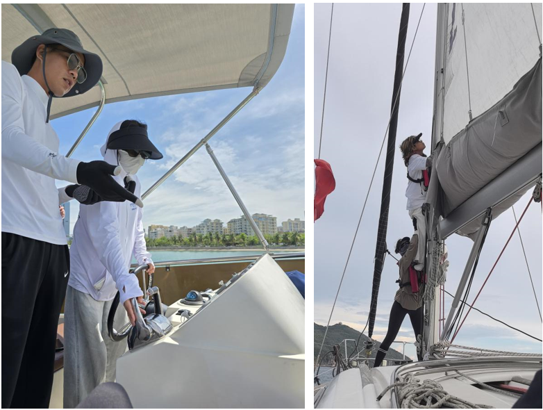 实操课程为期五天,分为游艇与帆船两个部分。游艇实操课程为期三天,学员们在实践中学习了游艇的直航、靠单标、落水人员救援、游艇绕标、侧靠与艉靠等基本技能。帆船实操课程则包括了迎风换舷、迎风偏顺风、顺风换舷、顺风偏迎风以及落水人员救援等内容。通过这些操作训练,学员们不仅掌握了游艇和帆船的驾驶技巧,也在实际海况下提高了应急反应能力。