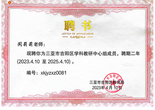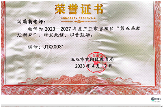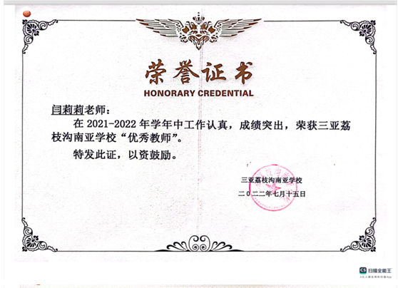 工作单位 三亚市吉阳区荔枝沟南亚学校
