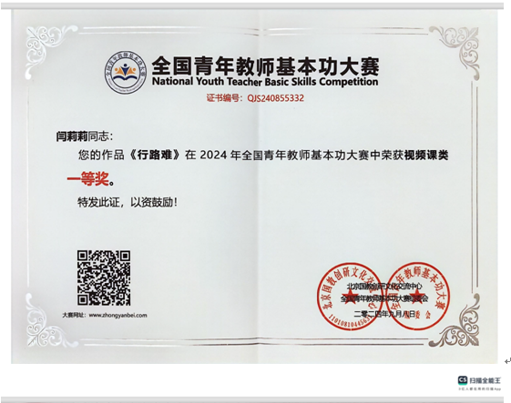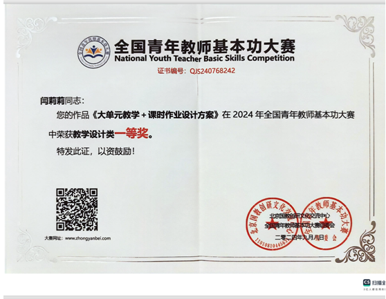 获奖情况 全国青年教师基本功大赛教学设计一等奖