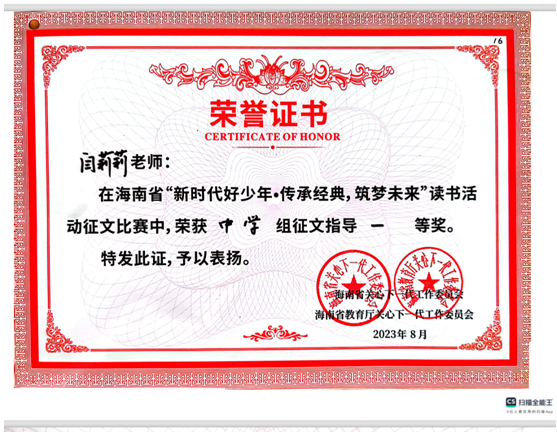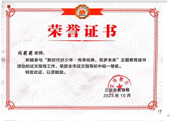 三亚市“新时代好少年”主题教育征文一、二、三等奖