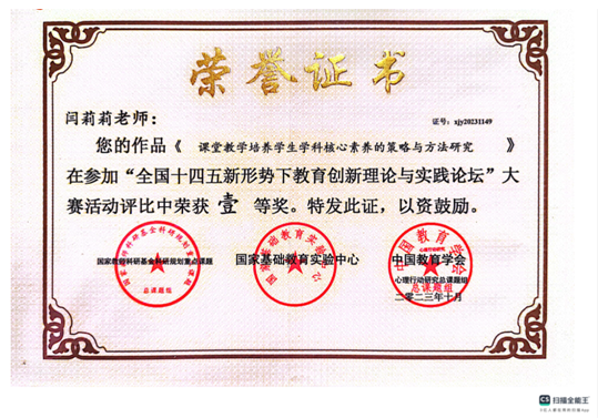 “全国十四五新形式下教育创新理论与实践论坛大赛”一等奖